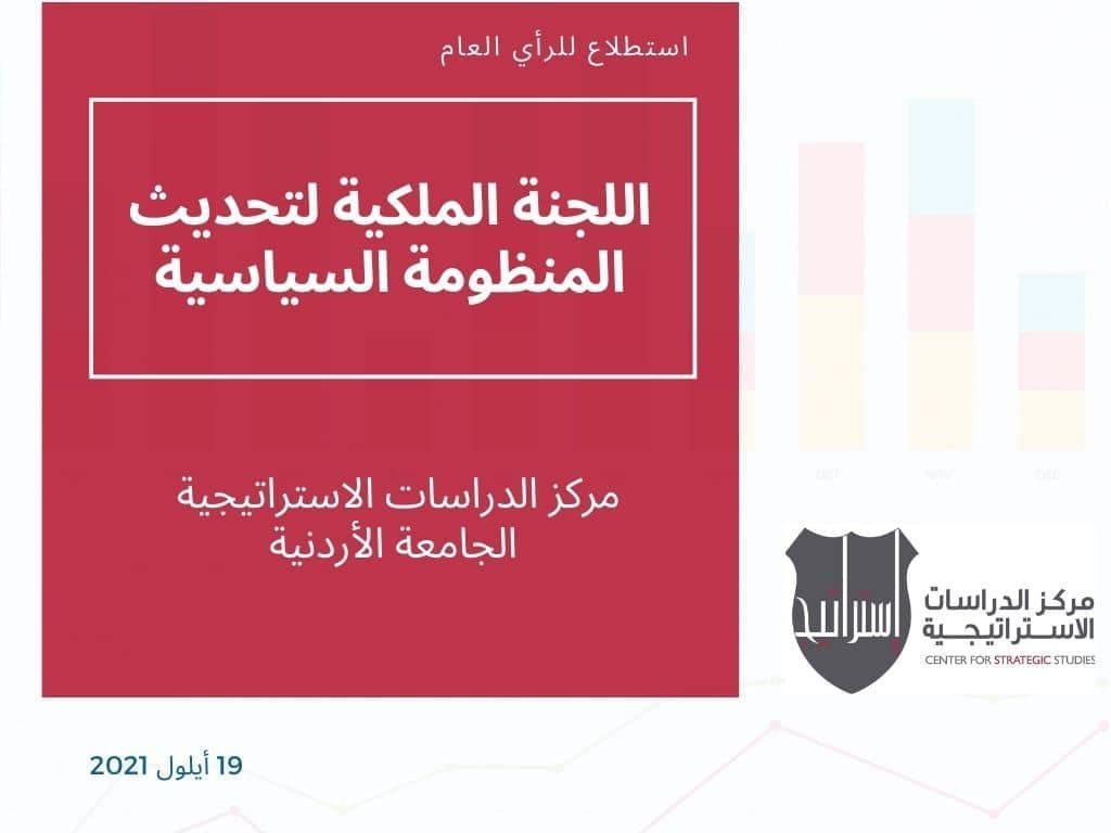 نظم مركز الدراسات الاستراتيجية في الجامعة الاردنية جلسة حوارية لقراءة ومناقشة نتائج استطلاع الرأي العام الذي اجراه المركز حول “اللجنة الملكية لتحديث المنظومة السياسية”، وهدفت هذه الجلسة إلى تقديم قراءة علمية موضوعية لهذه النتائج، حيث أشار الأستاذ الدكتور زيد عيادات نائب رئيس الجامعة الأردنية للشؤون الدولية وشؤون الجودة والاعتماد ومدير مركز الدراسات الاستراتيجية إلى أن هذا الاستطلاع واحدٌ من سلسلة من استطلاعات متعددة حول اللجنة يجريها المركز، إذ كان الاستطلاع الأول عند تشكيل اللجنة، ثم جاء هذا الاستطلاع عند اخر يوم من اعمالها، وسيليه استطلاع عند تسليم نتائجها وعرضها للجمهور، ثم سيكون هنالك متابعات حول تفاعل الحكومة والبرلمان والمجتمع المدني والأحزاب والاعلام مع هذه النتاجات.