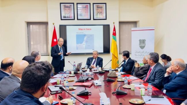 مركز الدراسات الاستراتيجية يستضيف محاضرة خاصة للبروفيسور دايساكو هيغاشي حول تحديات الوساطة وبناء السلام في عصر الانقسامات، بحضور سعادة السفير الياباني لدى المملكة السيد هيديكي أساري، حيث يُدير اللقاء الأستاذ الدكتور حسن المومني، مدير مركز الدراسات الاستراتيجية في الجامعة الأردنية.